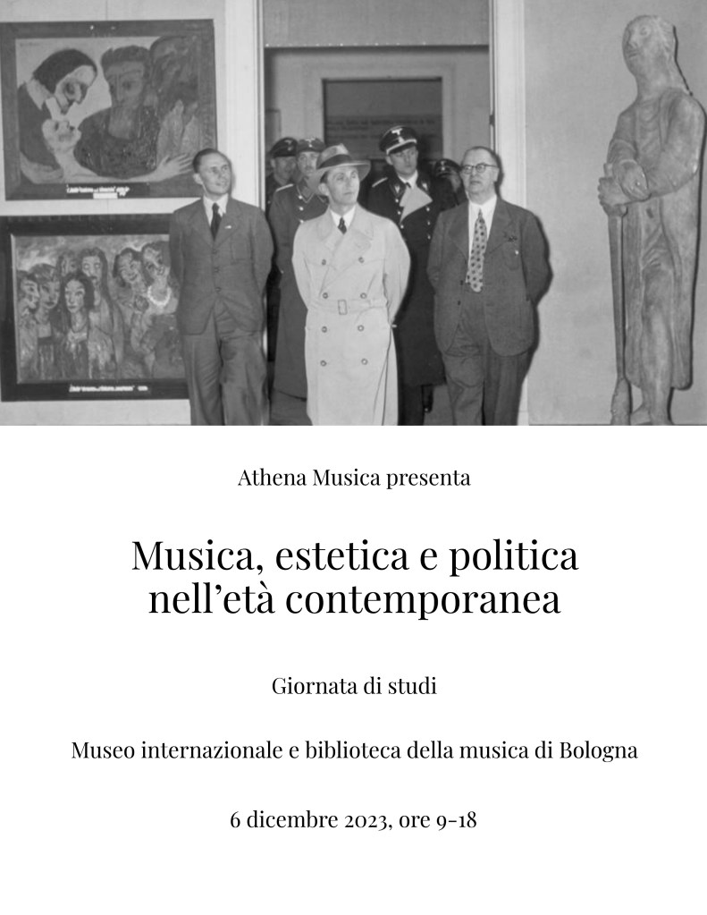 La diade ‘estetica e politica’ potrebbe dirsi a tutta prima un ossimoro, in quanto essa accosta due campi semantici in apparenza inconciliabili: la politica, quale scienza e pratica del governo della polis, e l’estetica quale disciplina filosofica dotata di una precipua costituzione discorsiva e orientata allo studio delle opere d’arte. Non si può tuttavia disconoscere che l’arte – anche quella musicale – può ben assumere una valenza politica in ragione del fatto che essa incide sull’orizzonte culturale del suo tempo e in taluni casi agisce direttamente sugli eventi storici. Se è vero che le politiche culturali dei regimi dittatoriali hanno storicamente influito sulle scelte compositive, è altrettanto vero che innumerevoli composizioni sono state concepite consapevolmente in chiave ideologica e sono riconducibili alle categorie di art engagé o di propaganda. Il rapporto fra estetica e politica si rivela non meno cruciale in sistemi di governo non totalitari, là dove il ricorso a forme estetiche di comunicazione svolge un ruolo rilevante nella politica culturale degli Stati, talora in chiave di legittimazione intellettuale delle classi dirigenti. Queste le principali aree di riflessione, in progressiva focalizzazione dai contesti ai testi, che la giornata di studi porrà al centro di un confronto fra studiosi di diversi àmbiti disciplinari: 1. L’ingerenza della politica sui processi di formazione dei musicisti e sui meccanismi di produzione e fruizione musicale; 2. Le teorie estetiche elaborate dai regimi totalitari; 3. Il rapporto fra arte e propaganda;4. I rapporti personali intrattenuti dai musicisti con esponenti politici; 5. L’interferenza delle posizioni ideologiche dei compositori sulle scelte tematiche e linguistiche. La natura multidisciplinare della giornata di studi favorisce una definizione onnicomprensiva dell’oggetto d’indagine, che dalla musica d’arte si estende ad altri generi, come la musica per i mass media, la musica d’aggregazione sociale, la musica d’intrattenimento.